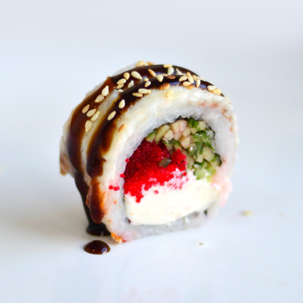 Рис SHINAKI, нори, сливочный сыр,огурец, массаго, угорь