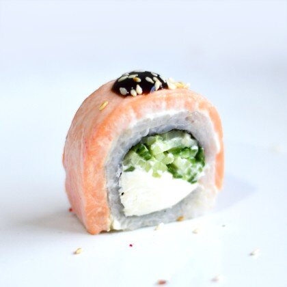 Рис SHINAKI, Нори, Соус шрирача, Сыр моцарелла, Креветка, Соус унаги, Зеленый лук.