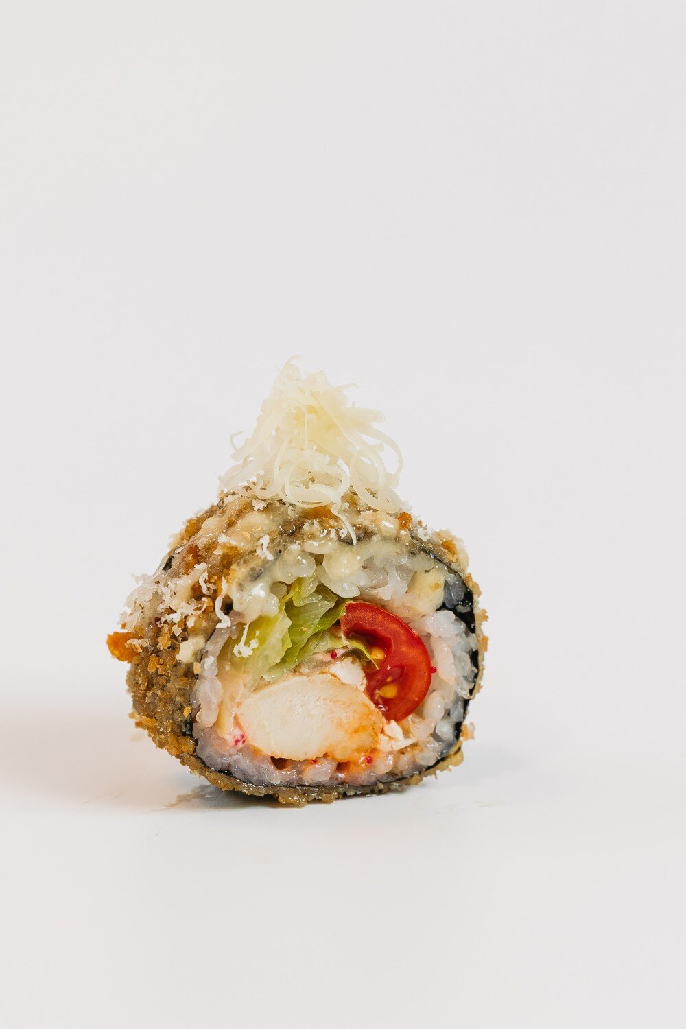 Рис SHINAKI, Нори, Спайси соус, Черри, Айсберг, Куриное филе, Цезарь соус, Сыр пармезан.