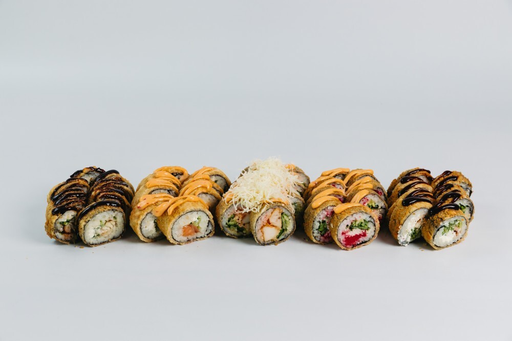 8шт. Колорадо 8шт. Лас Вегас 8шт. Цезарь 8шт. Темпура 8шт. Банзай 3шт.Соевых соусов 2шт.Имбиря 2шт.Васаби