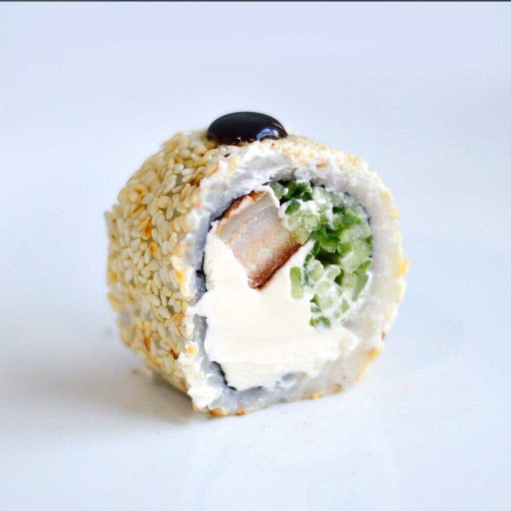 Рис SHINAKI, Нори,Творожный сыр, Огурец, Угорь, Кунжут, Соус унаги.