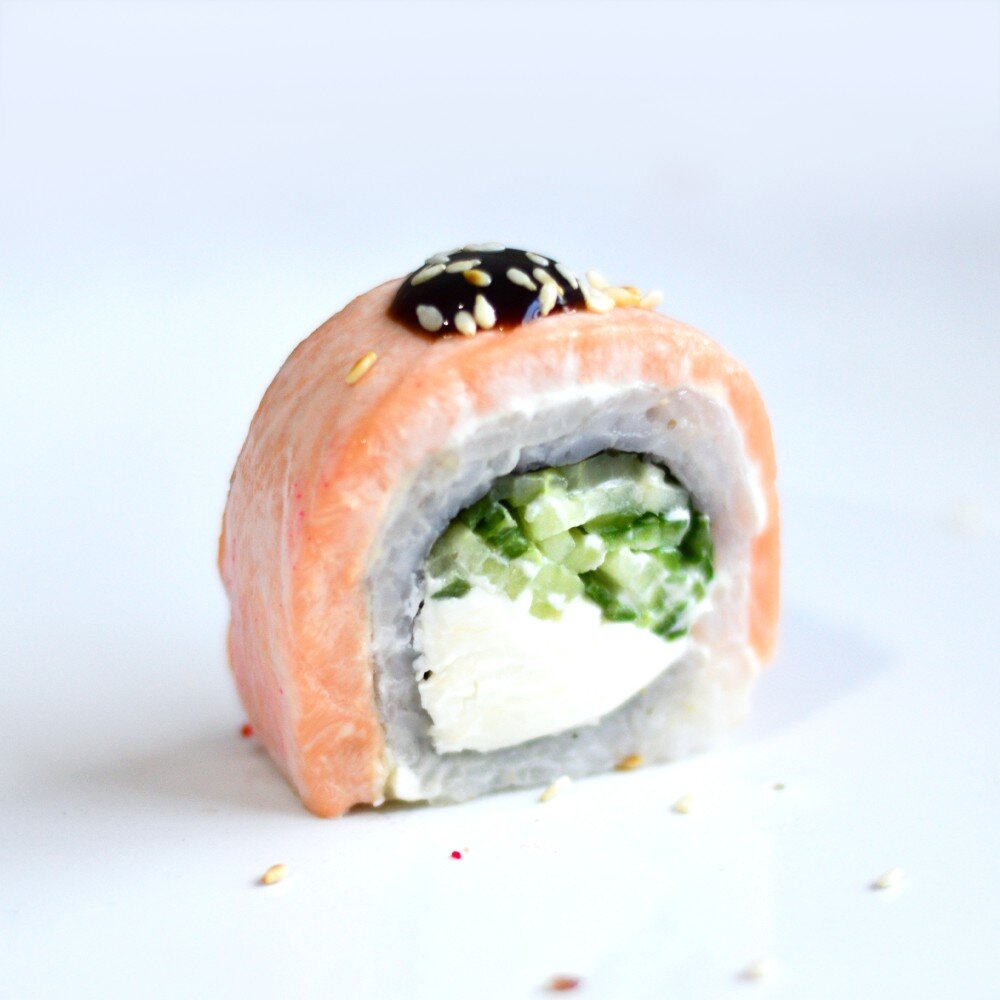 Рис SHINAKI, нори, сливочный сыр, огурцы, лосось, унаги соус