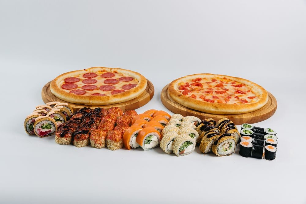 8шт. Филадельфия ролл 6шт. Маки ролл лосось 8шт. Запеченная курочка 8шт. Запеченный угорь 8шт. Колорадо 8шт. Банзай 8шт. Аляска с лососем 6шт. Маки ролл огурец Пицца Маргарита Пицца Пепперони