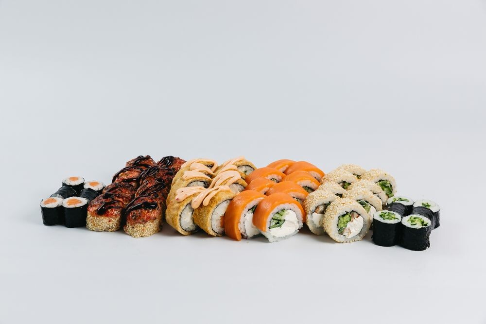 8шт. Филадельфия 8шт. Нежный угорь 8шт. Запеченный угорь 8шт. Темпура 6шт. Маки лосось 6шт. Маки огурец