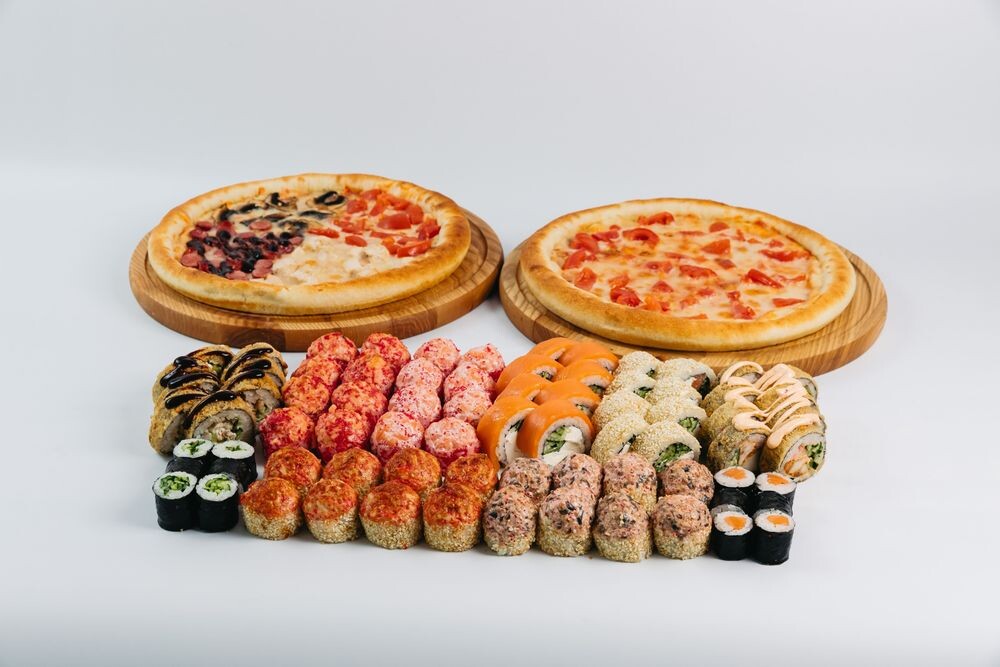 8шт. Цезарь 8шт. Банзай 6шт. Маки ролл лосось 6шт. Маки ролл огурец 8шт. Аляска с лососем 8шт. Филадельфия ролл 8шт. Спайси лосось 8шт. Спайси угорь 8шт. Запеченная курочка 8шт. Запеченный лосось Пицца 4 сезона Пицца маргарита